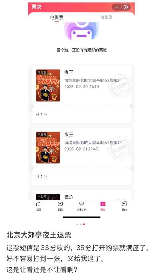 此外,粤语喜剧《夜王》的发行问题也在春节档期间引发关注。该片最开始仅面向两广地区发行并斩获超高排片,年初七起才全国放映,最终累计票房达7245.4万元。而在开放全国放映前,部分非两广地区的影院未获得密钥,但却错误地提前排片,导致不少观众吐槽买票后遭到退票。