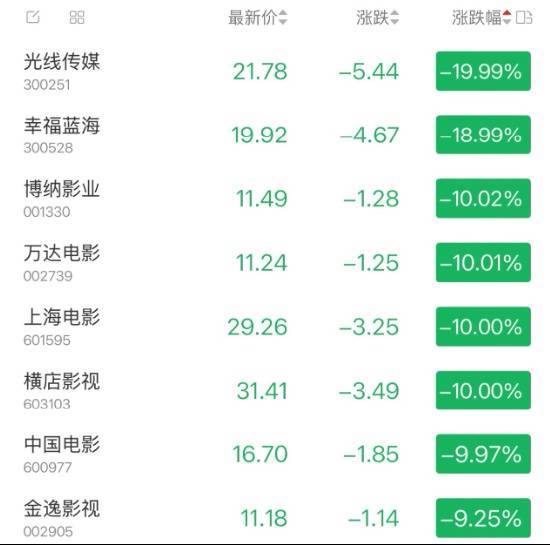 市场表现的不及预期,直接引发节后首个交易日影视股集体重挫,光线传媒、万达电影等多股跌停,港股猫眼娱乐、大麦娱乐亦跟跌。